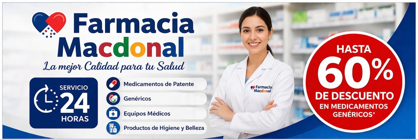 En Farmacia MACDONAL trabajamos con el compromiso de ofrecer un servicio cercano, eficiente y confiable. Entendemos la urgencia que puede existir al necesitar un medicamento, por eso priorizamos la rapidez en la atención y entrega, cuidando siempre la calidad de cada producto.